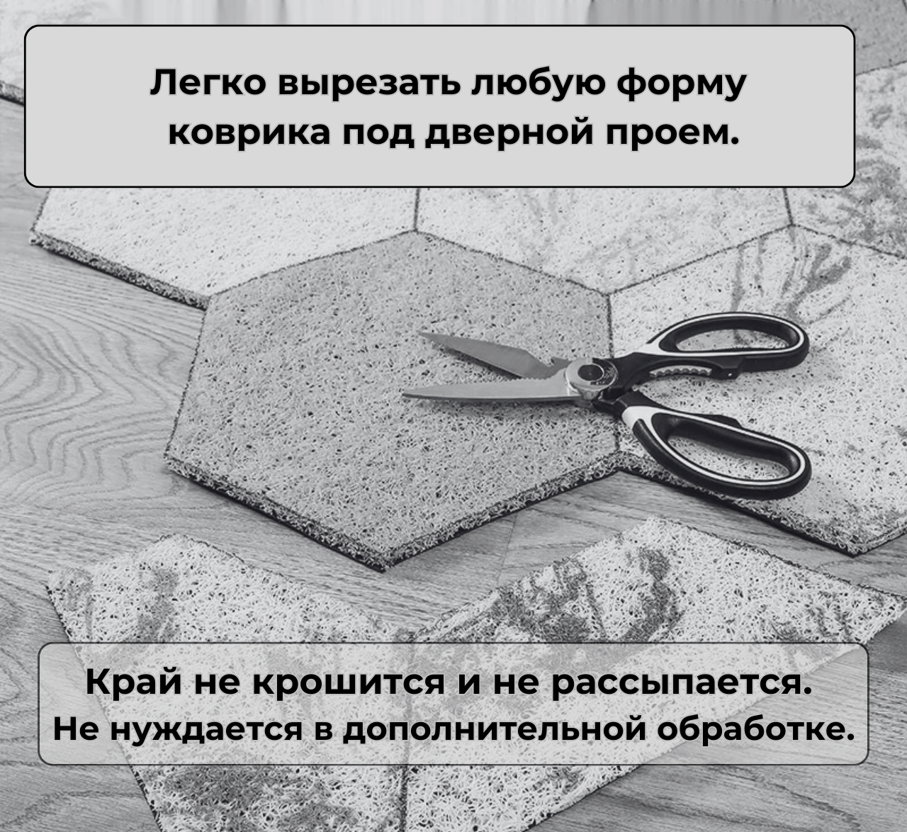 • Преимущество ковриков из ПВХ в том, что они подходят к абсолютно любому дверному проему! Просто берёте ножницы и вырезаете.⠀
